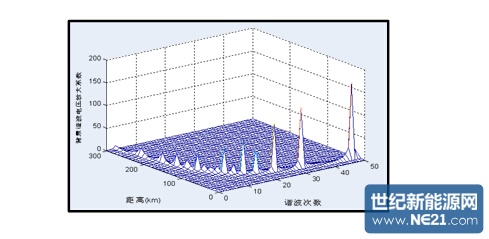 200-300km的输电线路易于对3次谐波电压产生谐振,谐振点处约有5倍的放大。100-200km输电线易于对5、7次产生谐振,在谐振点处有接近10倍的放大,对其它次数的谐波电压无放大。100km内的输电线路对11、13以及更高次的谐波电压可能产生谐振,放大系数可能超过20。由于背景谐波电压多为3、5、7等低次,需要关注100km以上输电线路的影响,谐振将导致输电线路谐波电压过高,严重影响光伏电站的稳定运行。
