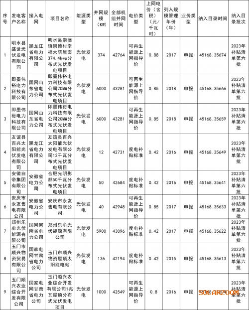 8月31日,国家电网发布《关于公布2023年第六批可再生能源发电补贴项目清单的报告》,此次纳入2023年第六批可再生能源发电补贴清单的项目共11个,核准/备案容量83.4MW,其中:集中式发电项目2个、核准/备案容量50MW,分布式发电项目9个、核准/备案容量33.4MW。此次变更可再生能源发电补贴清单的项目共18个,核准/备案容量74.7MW,其中:集中式发电项目3个、核准/备案容量70MW,分布式发电项目15个、核准/备案容量4.7MW。