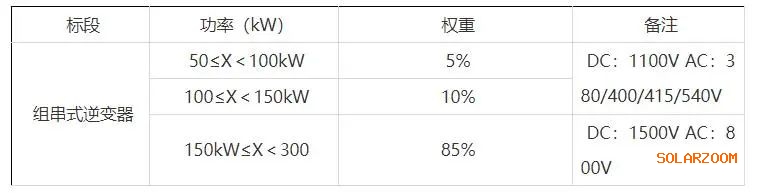 注:1.投标人针对每个功率段填报一个价格,在功率段内无论采用哪个功率逆变器,价格保持不变。