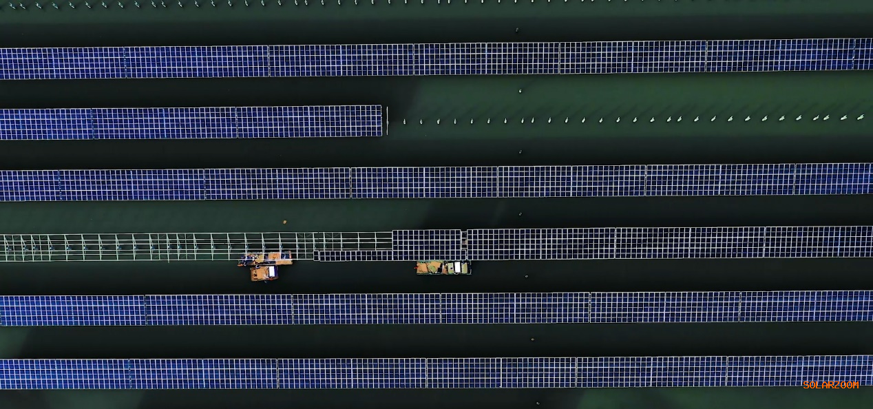 一块块光伏板、一根根支架组成的光伏阵列宛如一片耀眼的海上太阳能花海,勾勒出了科技创新与生态环境完美结合的新景象。
