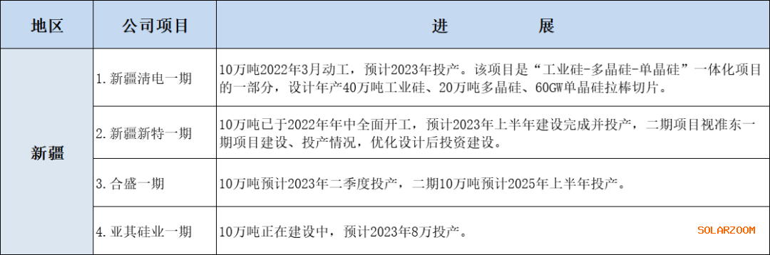 新疆地区多晶硅产能布局的最新进展请况:
