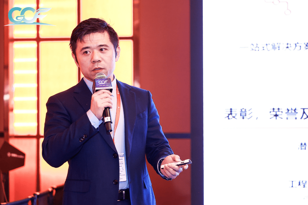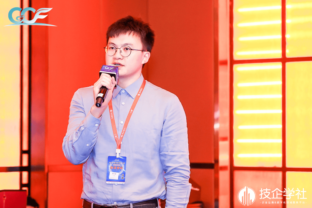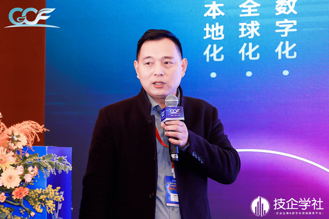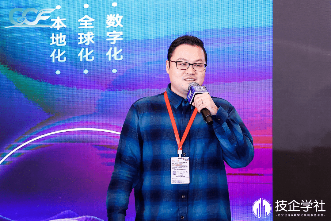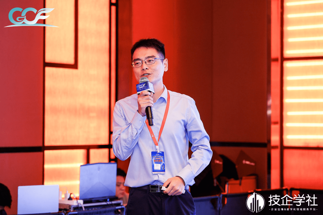首先由海鹏科技-售前技术支持负责人蔡晓杰先生发言,他首先介绍了海鹏科技的成长及发展历程,以及海鹏主营业务及产品,而后分享了海鹏在出海市场营销方面的经验,现场掌声连连。