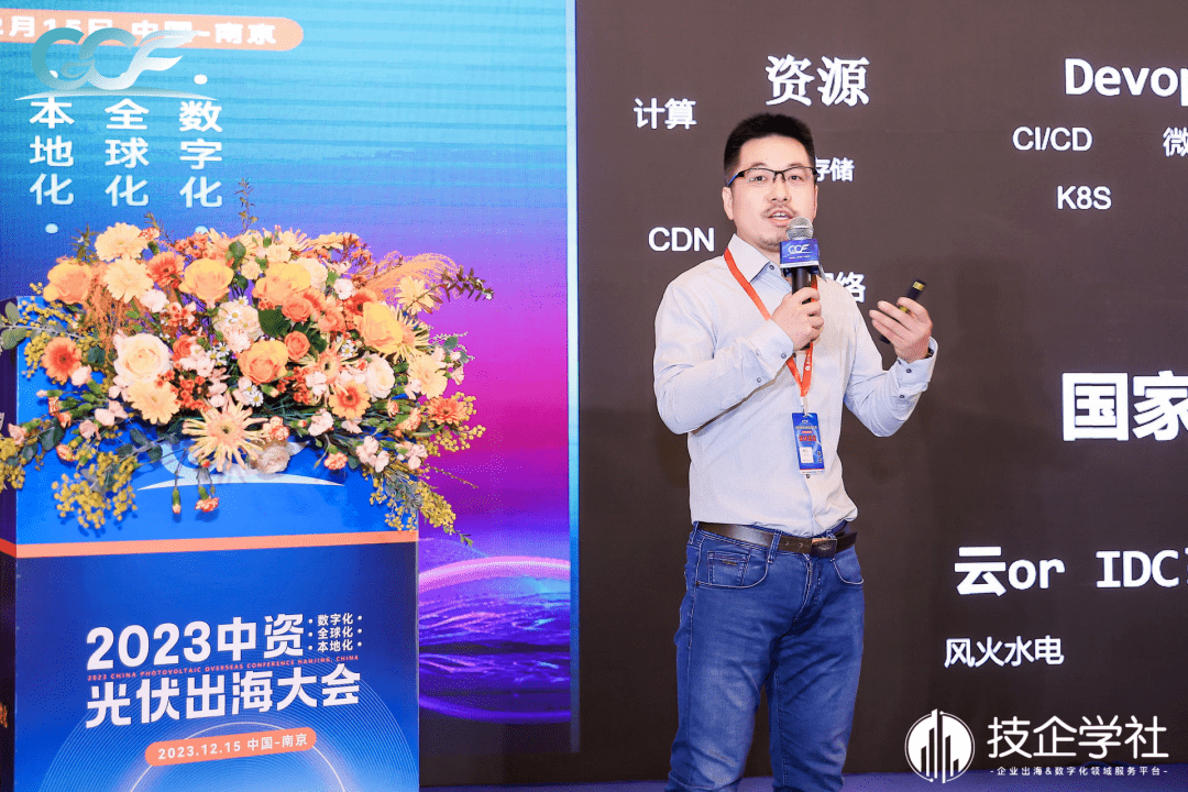 阿特斯阳光电力-全球IT负责人邓宏军先生带来了中企出海,IT挑战与应对的分享,他分析了从引进来到走出去遇到的挑战与机遇,展开概述了中企IT对于如何破局提出了相关建议。现场掌声不断。