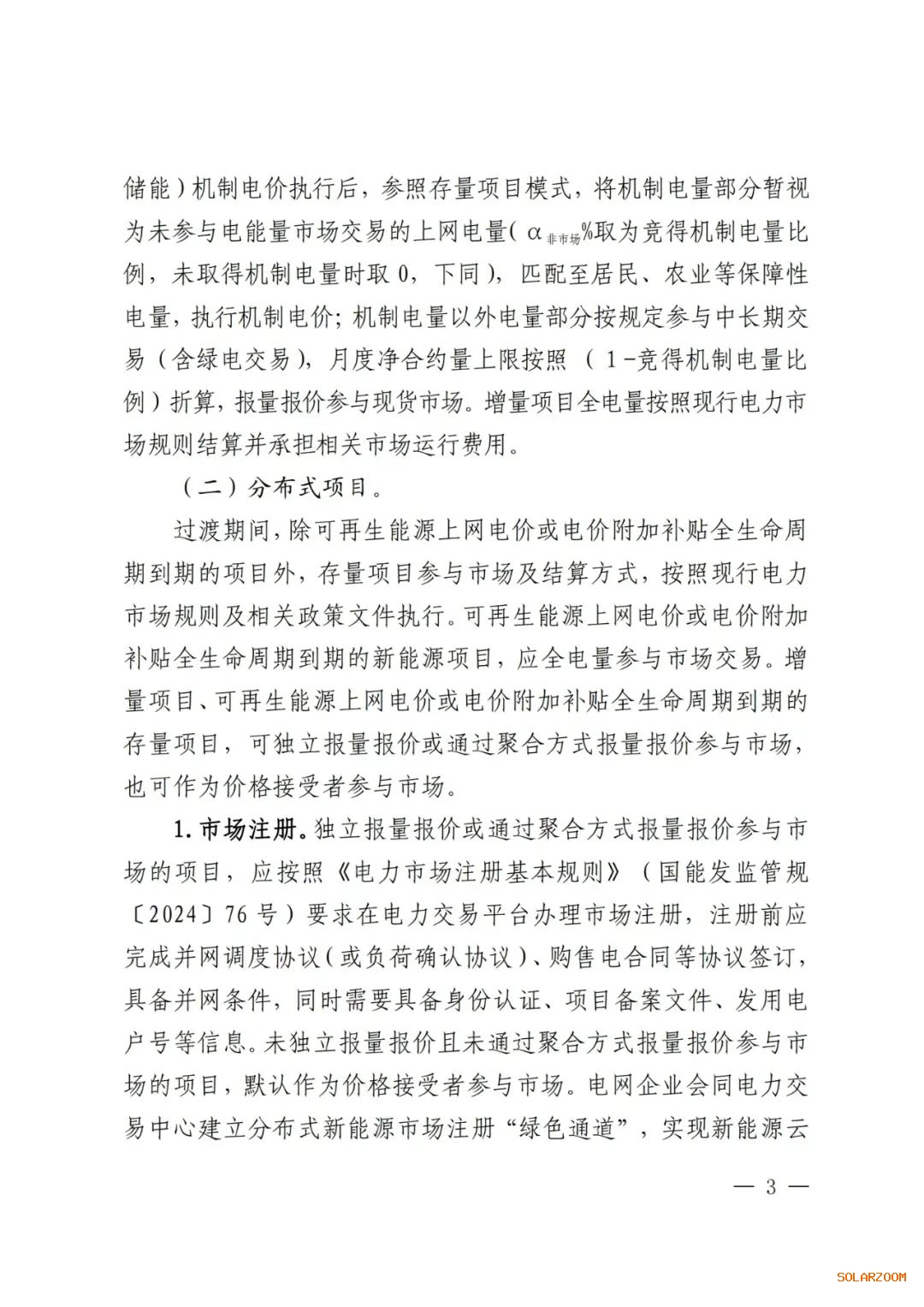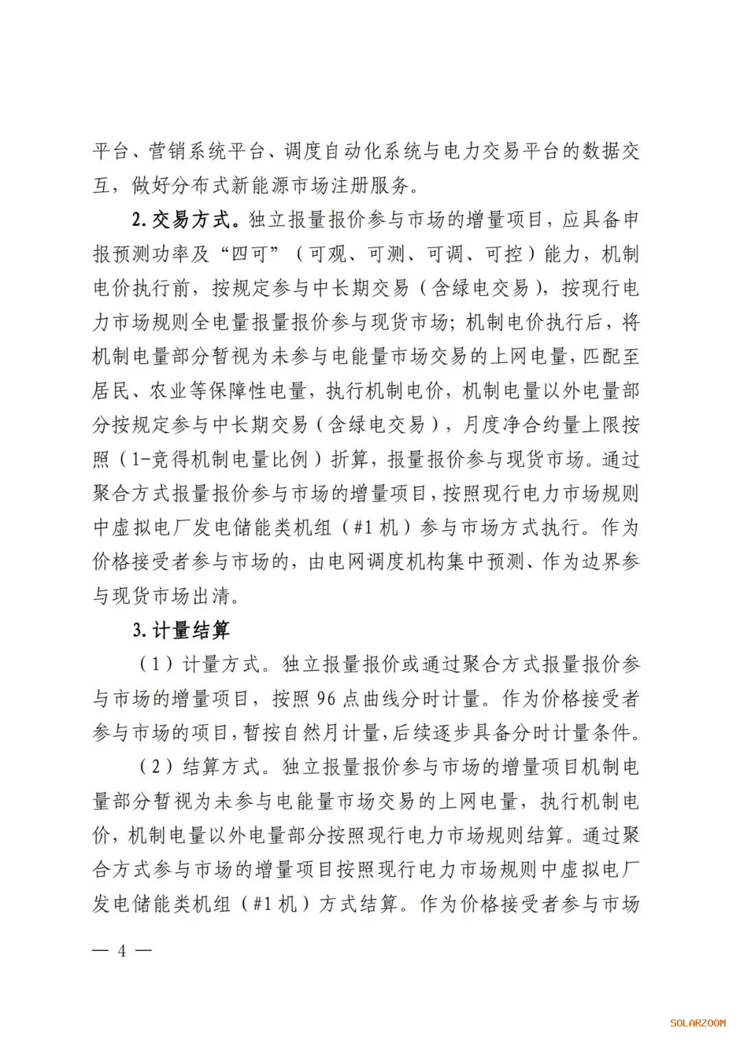 通知规定,存量项目(含配建储能)参与电力市场交易按照现行电力市场规则规定执行,增量项目(含配建储能)在机制电价执行前,按规定参与中长期交易(含绿电交易),按现行电力市场规则全电量报量报价参与现货市场。