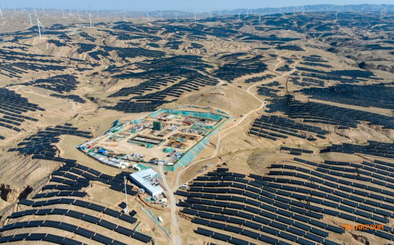 位于宁夏中卫市沙坡头区的宁夏电投永利(中卫)300万千瓦光伏绿电项目占地约11.8万亩,计划总投资103亿元,是宁夏重点大型新能源绿电项目,也是国内在建的最大单体光伏项目之一。该项目配套建设3座330千伏变电站,接入甘塘750千伏变电站,将宁夏地区绿电通过“宁电入湘”通道输送到湖南。