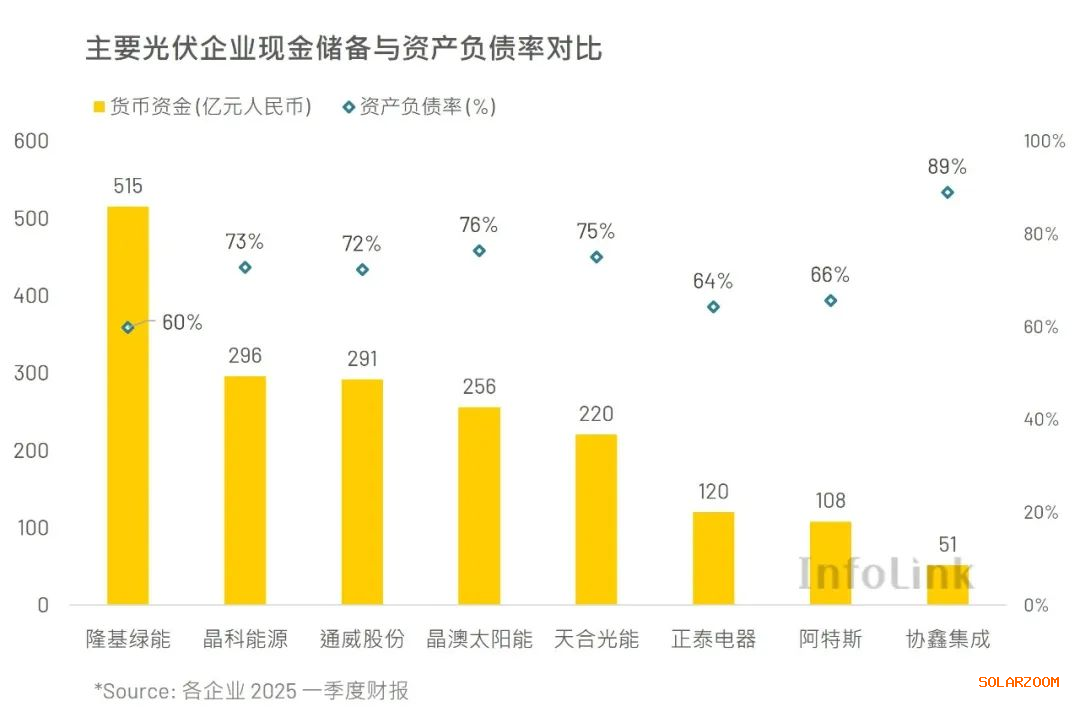 2025 上半年,组件行业依然在低谷中摸索前行。当前光伏行业正处于行情低谷的反转期,庞大的出货量虽能体现企业的品牌影响力与渠道渗透能力,但长远而言,持续盈利的能力才是企业实现可持续发展的核心。全球前十组件供货商均为一体化企业,虽具备规模优势,但在亏损周期内,产能越大、固定成本压力越高,反而面临更严峻的经营挑战。相较之下,拥有充裕现金储备与健康资产负债率的企业,能在行业下行时期保有余力,掌握投资经营主动权。