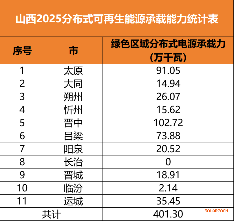 从规模来看,山西2025年分布式可再生能源承载能力共计401万千瓦,其中晋中、太愿、吕梁三地市规模最大,超过50万千瓦。