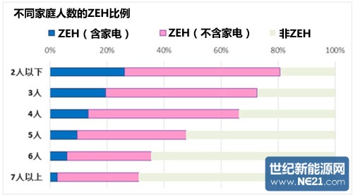 不含家电+含家电的ZEH达成率,“仅夫妇二人的家庭”为81%,“夫妇+孩子”为68%,孩子夫妇+父母为51%,呈家庭成员越少,达成率越高的趋势。