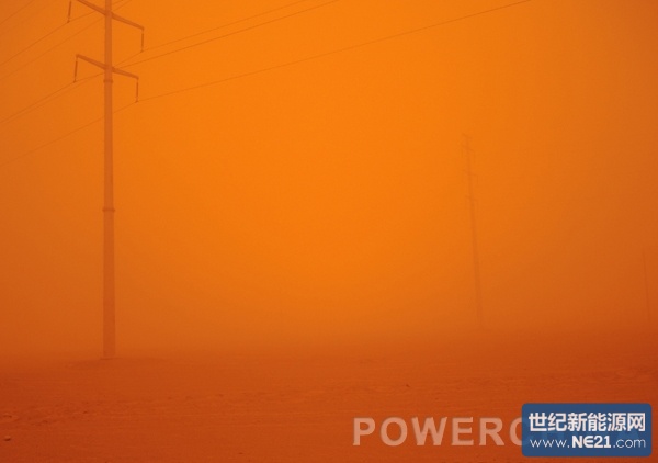 3月31日上午,强烈沙尘暴开始侵袭鲁能敦煌光伏项目施工现场。