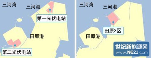 两座光伏电站邻近CTECH等7家公司运营,由50MW光伏电站和6MW风电场组成的“田原光伏风力发电站”。