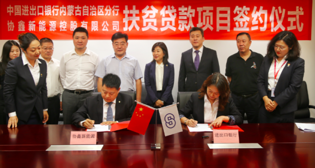 9月4日,中国进出口银行内蒙古自治区分行与装机容量全球第二的新能源企业协鑫新能源控股有限公司签订光伏精准扶贫“金融+”合作协议,为其批复5.4亿元贷款,支持其在内蒙古的光伏扶贫电站建设项目。
