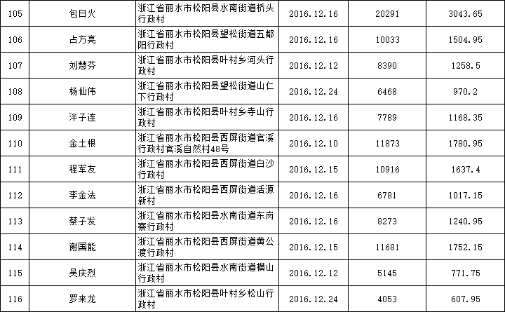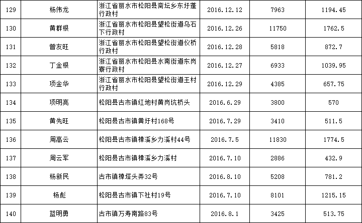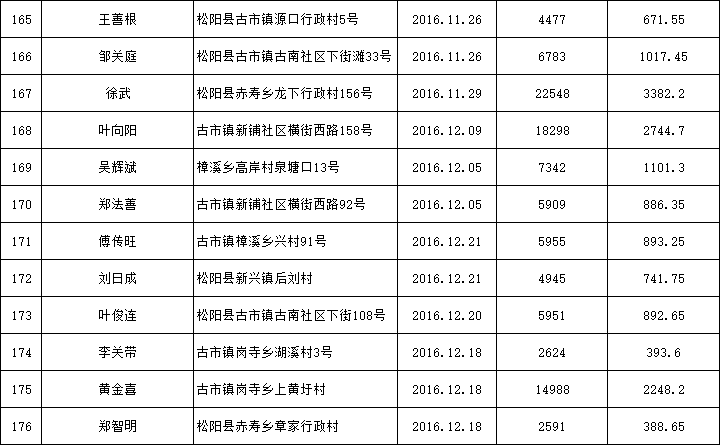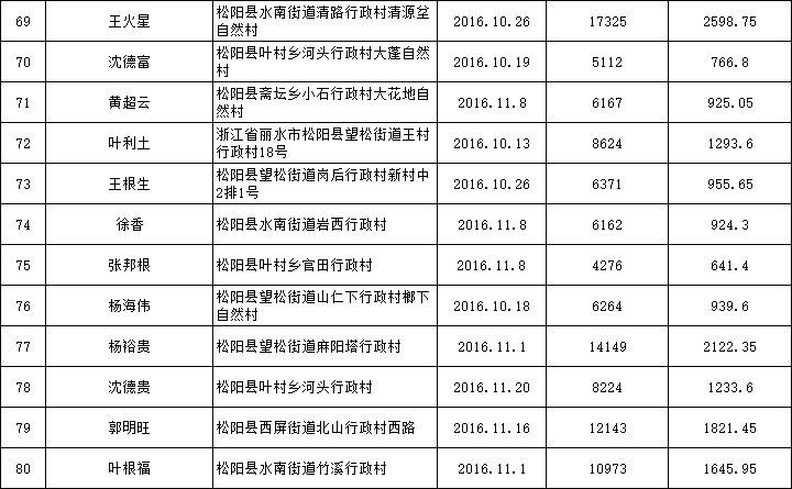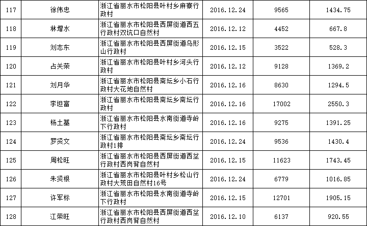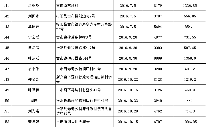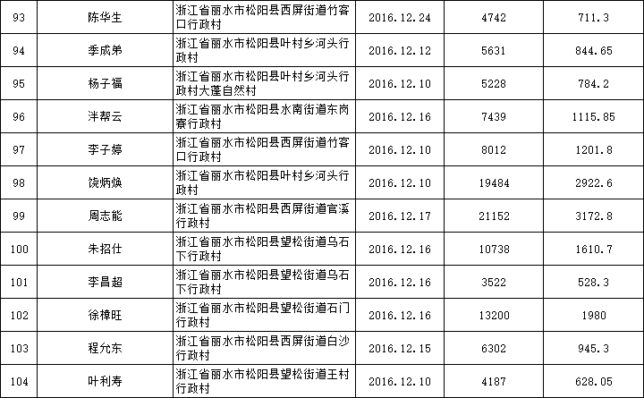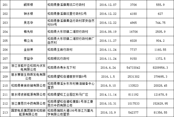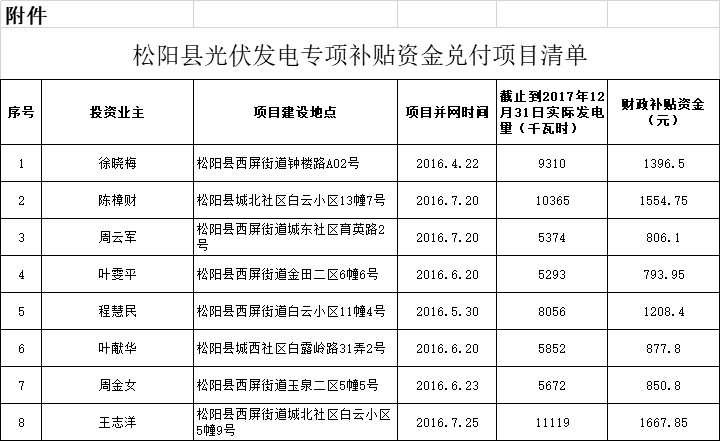 附件:松阳县光伏发电专项补贴资金兑付项目清单