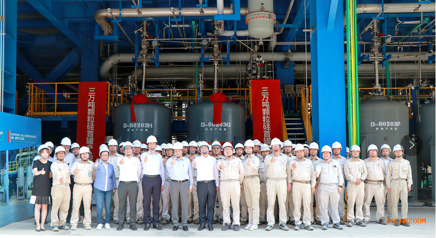 6月16日,协鑫科技旗下江苏中能硅业科技发展有限公司举行新增3万吨FBR颗粒硅产能投产仪式,协鑫科技董事局主席朱共山,董事局副主席、联席首席执行官朱战军,联席首席执行官兰天石等公司高层出席剪彩仪式。