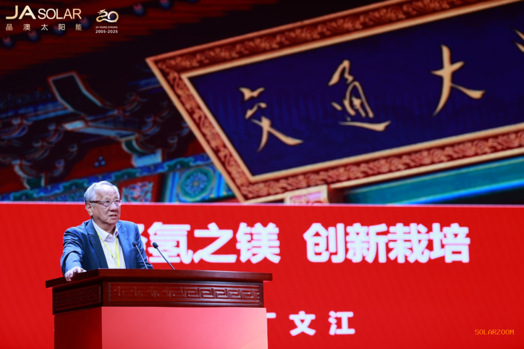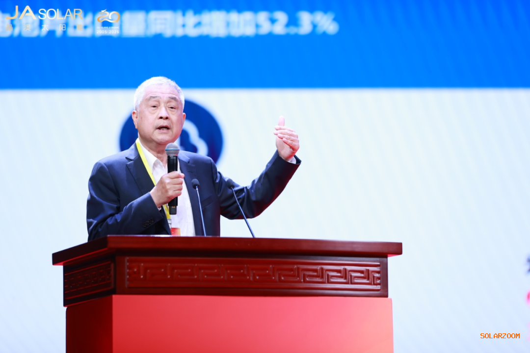 中国光伏行业协会名誉理事长王勃华作《关于光伏行业发展形势的报告》主题演讲,分析了当前光伏行业的挑战与机遇,未来光伏新增装机需求仍将处于高位,需通过行业协同、良性竞争、技术创新等,推动光伏产业高质量发展。
