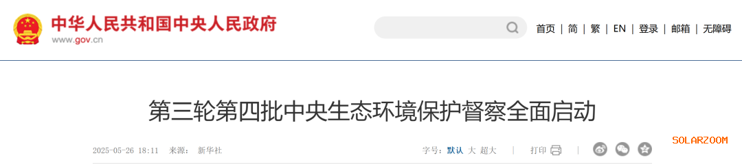 根据新华社报道,经党中央、国务院批准,第三轮第四批中央生态环境保护督察全面启动。8个中央生态环境保护督察组将分别对山西、内蒙古、山东、陕西、宁夏5省(区)开展督,同时对华能集团、大唐集团、国家电力投资集团3家中央企业开展督察,进驻时间约1个月。