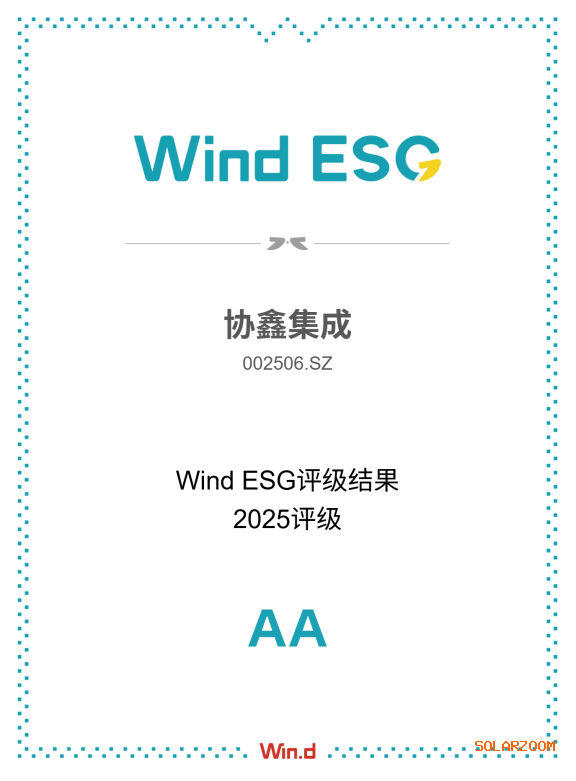 近日,国内权威ESG评级机构Wind(万得)发布2025年最新评级结果。协鑫集成在ESG可持续发展治理领域再获突破,评级由去年的A级跃升至AA级,这一评级结果彰显了公司在该领域的持续进步和行业领导地位。