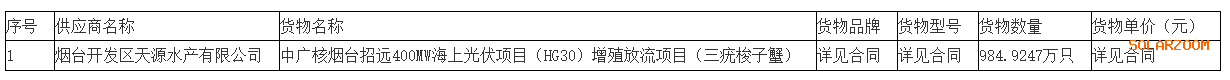 二、项目名称:中广核烟台招远400MW海上光伏项目(HG30)增殖放流项目(三疣梭子蟹)