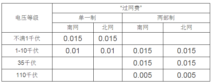 “过网费”的核算基于不同电压等级之间的输配电价差。