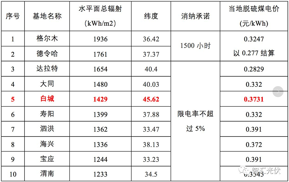 在10个领跑者基地中,白城的太阳能水平面总辐射处于中等水平。但由于下列几个因素: