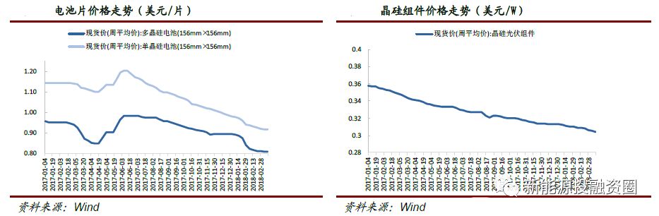 根据wind 的统计数据,光伏级多晶硅(现货价,周平均价,下同)自2018 年年初以来已经下降了约16%。单晶硅片(156mm×156mm)自年初以来也下降了约11%。