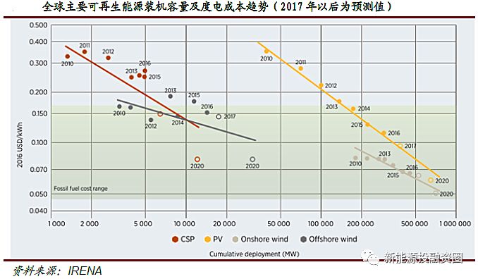 近年来,全球能源消费剧增,煤和石油等一次能源的大量使用,一方面使得化石能源储备迅速减少,另一方面造成了诸如温室效应等严重的环境问题。以风电和太阳能发电为代表的清洁能源发电成本迅速下降。2017 年,全球光伏度00 电成本已经达到0.1 美元/度。到2020 年预计能够达到0.06 美元/度。已经处于化石燃料发电度电成本的下限。