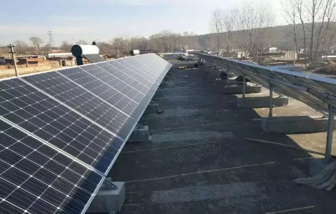 山东省某客户安装的5千瓦光伏电站,西南侧有太阳能热水器,下午13:00-16:00间,前排光伏方阵被热水器阴影遮挡,共计遮挡7块光伏组件,实测电站损失发电量约30%。