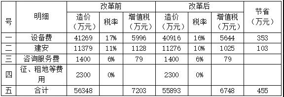 改革措施中税率的调整,减少了光伏发电项目建设及运营过程中增值税纳税额,在概算编制及财务测算中相应调整税率。措施中第(三)条退回留抵税额未明确提发电企业,暂不考虑此条政策的影响。