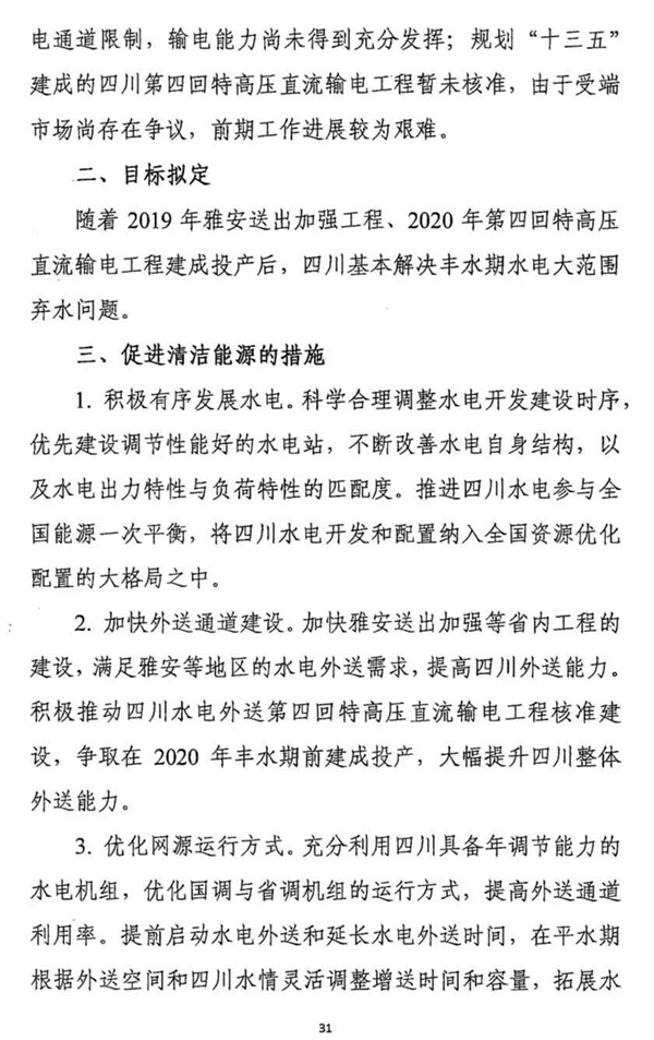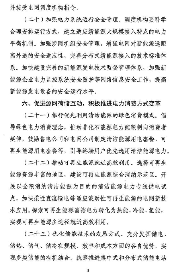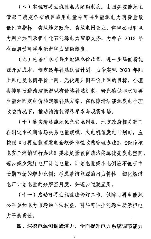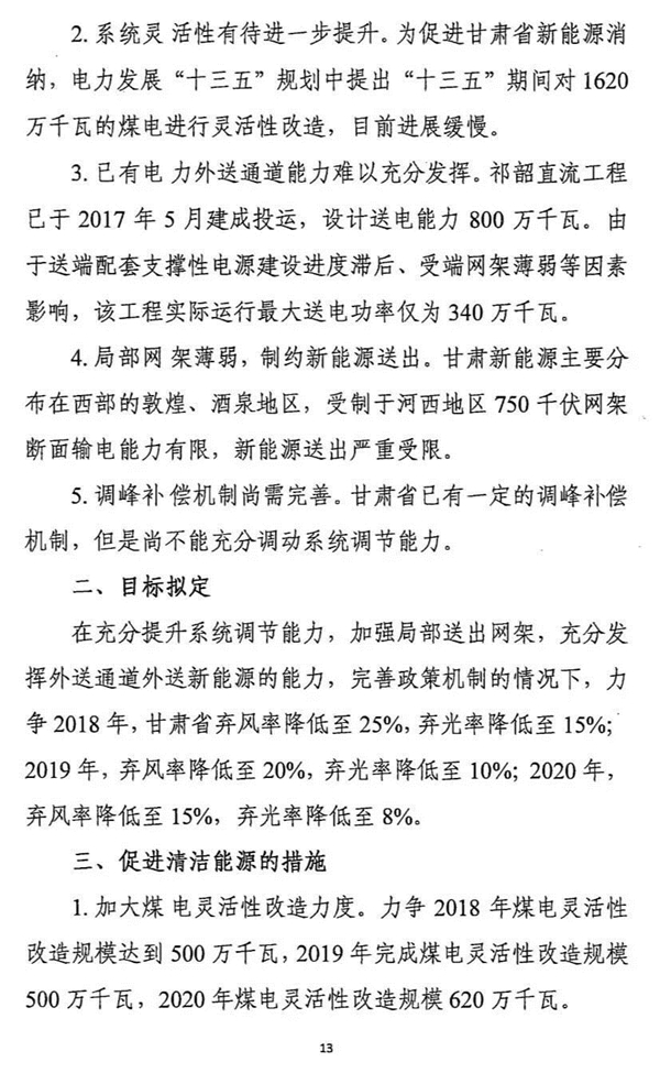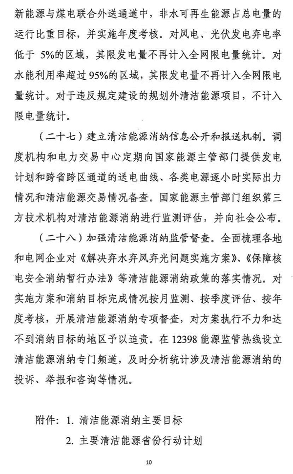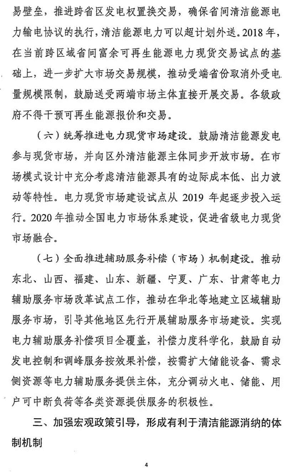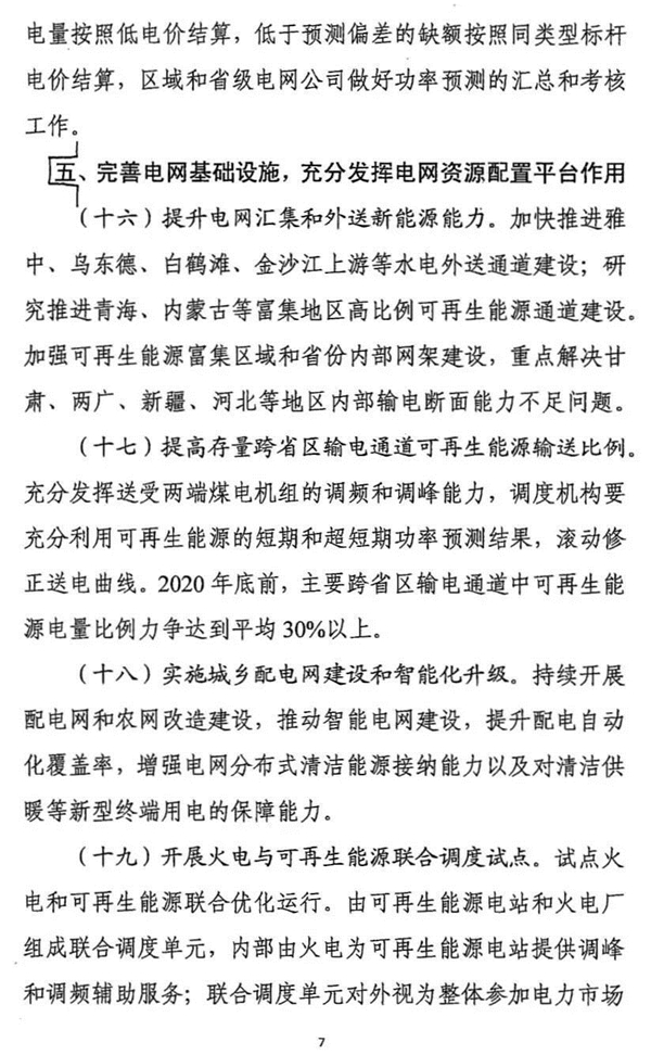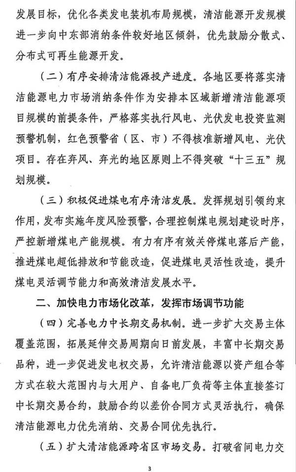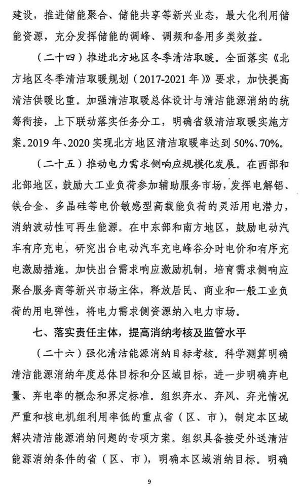 该文件从控制电源开发节奏、加快电力市场化改革、宏观政策引导、提高电力系统调峰能力、完善电网基础设施、促进源网荷储互动、落实责任主体七大方面全力推动清洁能源消纳目标的实现。