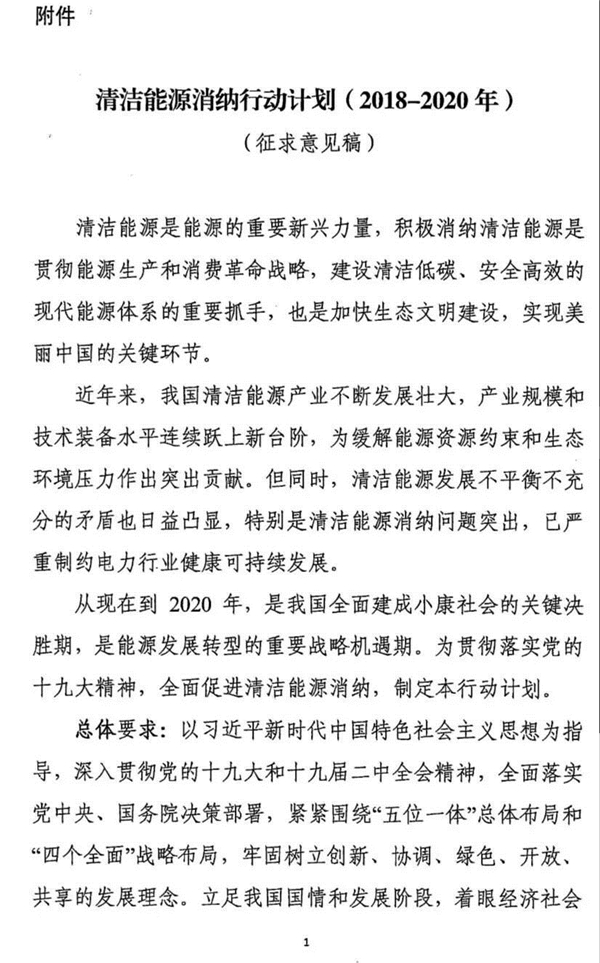 更全面的信息可参加下方的《清洁能源消纳行动计划(2018-2020年)》(征求意见稿。)