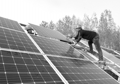 罗山县通过发展“光伏扶贫”项目,壮大集体经济,造福贫困群众。预计至本月底,全县将建成“光伏扶贫”村级电站54个,装机总容量达16.055兆瓦,将有3100余户贫困户从中受益。图为4月25日,工人们正在子路镇丰店村抢天夺时安装“光伏扶贫”小电站。