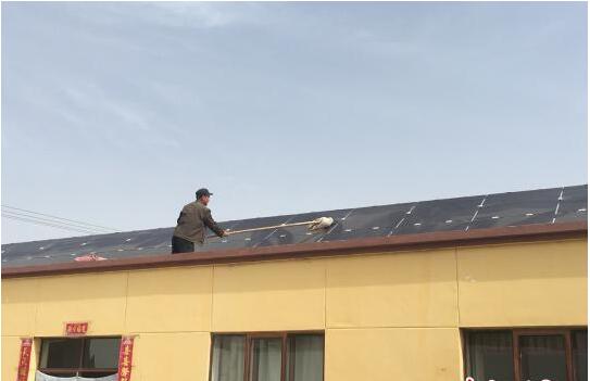 我们家的太阳光能生钱。”家住甘肃酒泉市瓜州县广至藏族乡新堡村村民芦满财说,我家屋顶有一个“大存折”,不出力不出工,屋顶吸收太阳光“变”电就有钱。说话间歇,芦满财爬上屋顶,开始擦拭光伏电板,“时间久了,我上来搞搞卫生,把电板擦干净就行。”