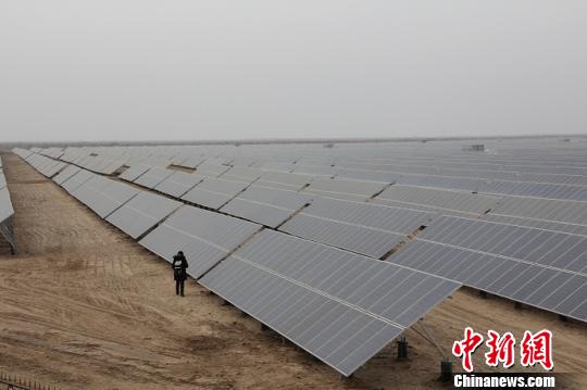 2013年1月18日,新疆兵团阿拉尔市30兆瓦大型地面光伏电站成功并网,成为新疆兵团首批并网的大型地面光伏电站。(资料图) 戚亚平 摄