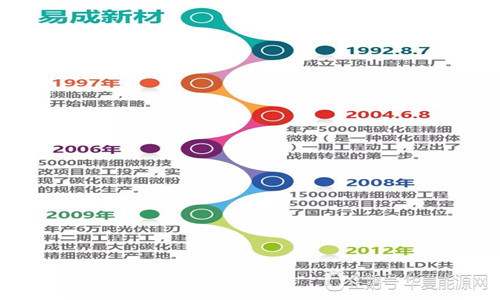 其中,易成新能由“河南新大新材料股份有限公司”(以下简称“新大新材”)整体变更。2013年易成新材与新大新材成功重组。2015年公司正式更名为河南易成新能源股份有限公司。