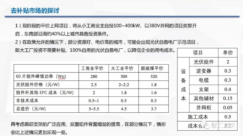 自发自用、余电上网:10GW的规模指标,531之后并网无国家补贴(地方政府想办法?),要参与竞价