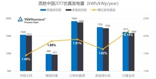 TÜV莱茵的质胜中国评比为我们提供了公平的发电模拟对比,因参赛组件的Panfile均由TÜV莱茵测试,而测试的组件也由其从产线上抽取。结果显示,单晶组第一名相比常规组第一名多发电1.8%左右,模拟结果相对实证结果略有低估。