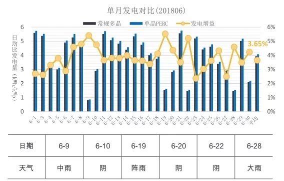 2017年9月至2018年6月10个月的统计中,单晶PERC组件所体现出的发电增益与单日、单月的增益基本一致,多发电优势非常稳定,印证该组件没有发生明显的衰减。