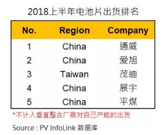 回顾2018上半年历经了需求冷清的一季度、以及630需求不如预期的二季度,且整体市场行情于“531”公布后急转直下。根据PVInfoLink数据库显示,上半年电池片厂家出货排名依序为通威、爱旭、茂迪、展宇、平煤,与2017年排名相比已出现转变。