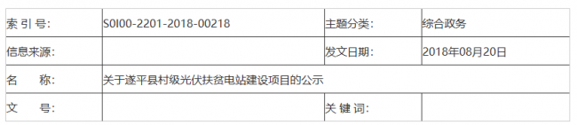 遂平县村级光伏扶贫电站项目S0I00-2201-2018-00218,现将项目有关情况公示如下: