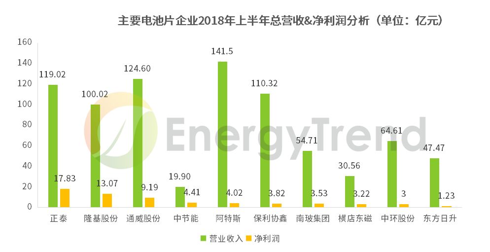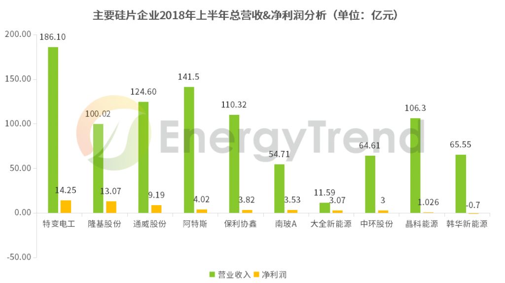 以下是EnergyTrend根据各企业的财报数据整理的硅片、电池片、组件三个环节主要企业的营收及净利润数据:
