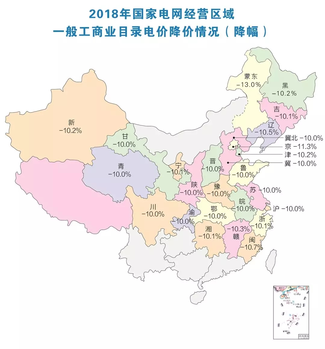 2018年,政府工作报告提出“降低电网环节收费和输配电价格,一般工商业电价平均降低10%”的目标,当年政策也取得了明显的实际成效——每度电全国平均降低电价8分钱以上,降幅超过10%。