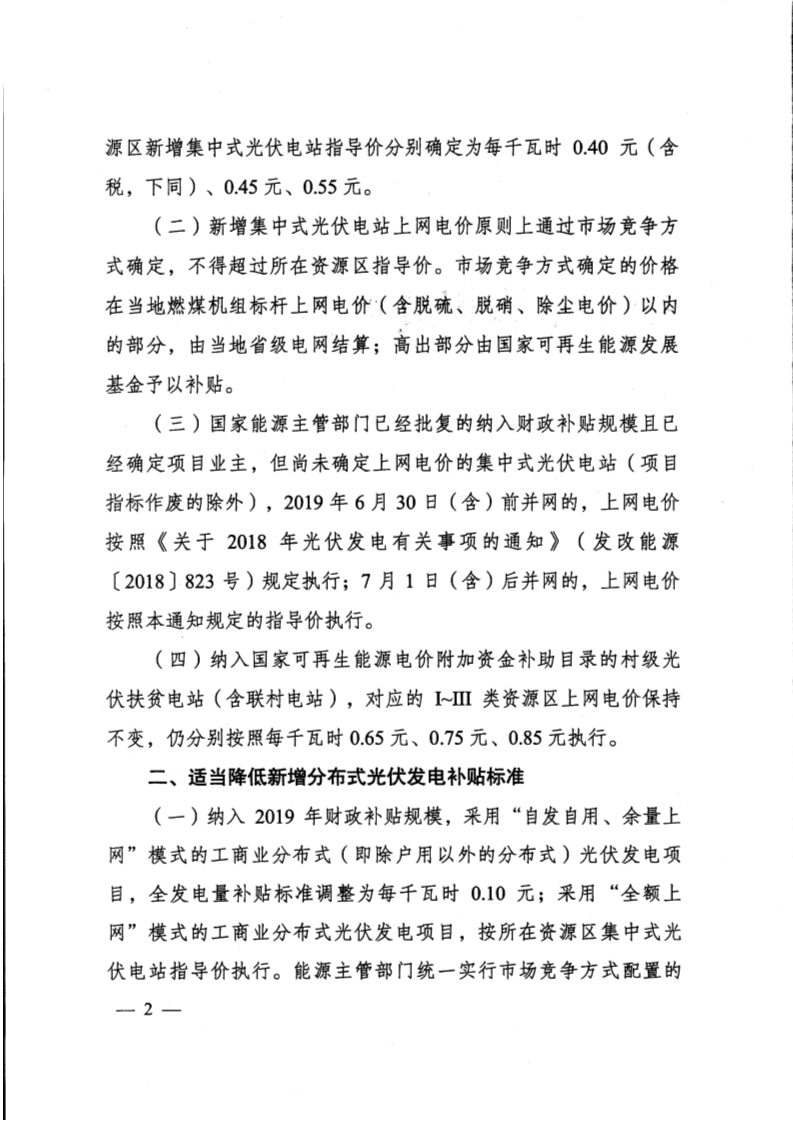 《国家发展改革委关于完善光伏发电上网电价机制有关问题的通知》(发改价格〔2019〕761号).pdf