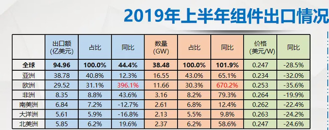不过,中国机电产品进出口商会(下称“机电商会”)太阳能光伏分会秘书长张森告诉能源一号,上半年看,亚洲依然是最大的出口市场,其中东南亚的越南异军突起。欧洲双反结束后,对欧出口激增,对荷兰、西班牙、乌克兰、德国的出口额跻身前十。而北美洲则跌倒了第六位,中方对这一地区仅仅有5.85亿美元的出口,落后于大洋洲。