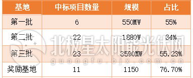 根据北极星太阳能光伏网统计,三批领跑示范基地加上奖励激励基地共14.5GW的项目中,国企占比超过50%。其中,国家电投、中广核、三峡新能源三家企业共拿下了33.34%的份额。