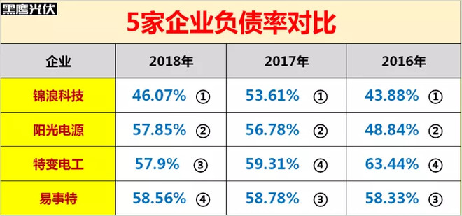 从负债率来看,截止2018年,除上能电气外,其他4家逆变器企业负债率都维持在60%以下,其中锦浪科技负债率在50%以下,阳光电源负债率也控制在较低水平。几家逆变器企业基本维持了相对稳定的负债水平,短期内出现债务危机的可能性较小。