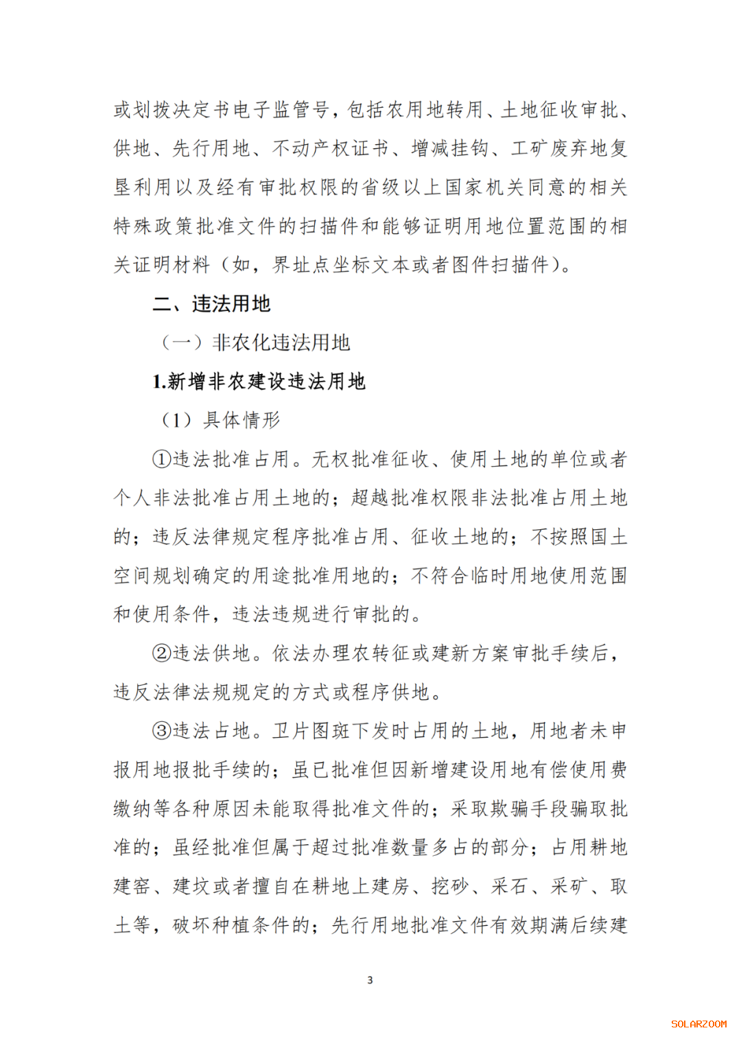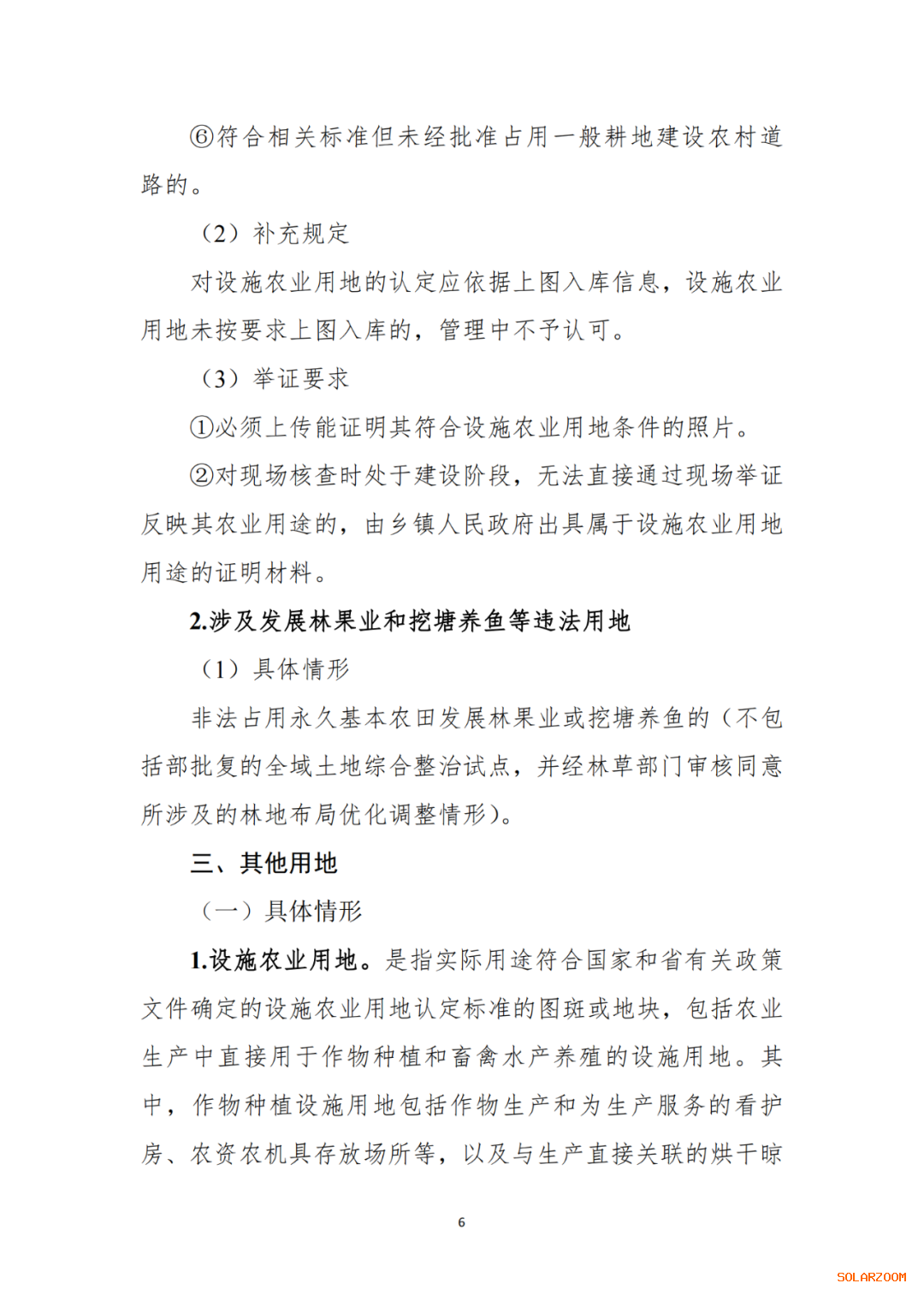 判定规则。对与农业生产直接相关联的用地,主要用于农作物晾晒,农闲时临时用于非营利性停车场、村民健身等公众服务的,判定为设施农业用地;对以服务农业生产为名,主要用于停车场、村民健身等用途的用地,应当办理建设用地审批手续。未办理的,判定为新增非农建设违法用地。