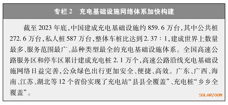 全方位构建清洁高效的交通运输体系。随着经济社会发展,物流、出行需求不断增加,交通用能还将持续增长。中国加快发展多式联运,提高铁路、水路在综合运输中的承运比重。深入推进城市公共交通优先发展,构建完善绿色出行服务体系,在城市客运领域推广应用新能源车辆。机动车排放标准与世界先进水平接轨,基本淘汰国三及以下排放标准汽车。运输能耗强度不断下降,2023年铁路单位运输工作量综合能耗较2013年下降约19%。大力发展充电基础设施网络,完善加氢、加气站点布局及服务设施。截至2023年底,累计建成充电基础设施近860万台,加氢站超过450座。