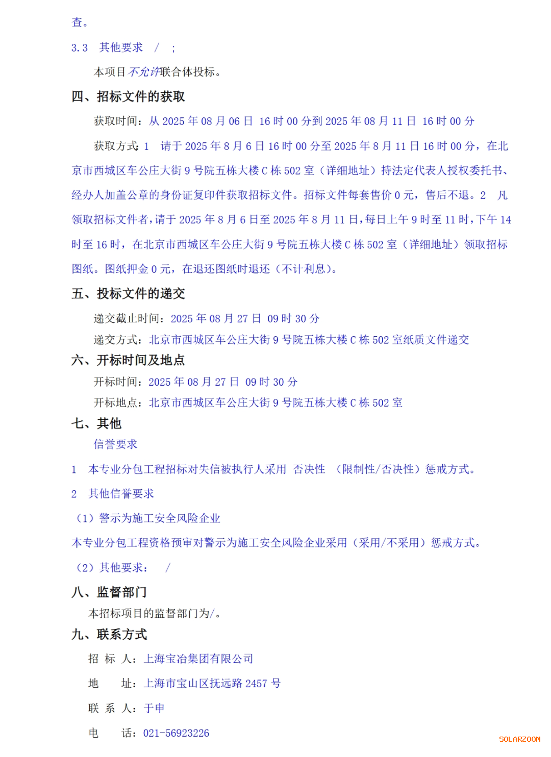 项目招标人为上海宝治集团有限公司,该分包工程的建设规模总装机容量338.94kW,合同估算价292.97(万元),折合8.644元/W,建设地点北京市海淀区西北旺镇西玉河村。计划工期135日历天。