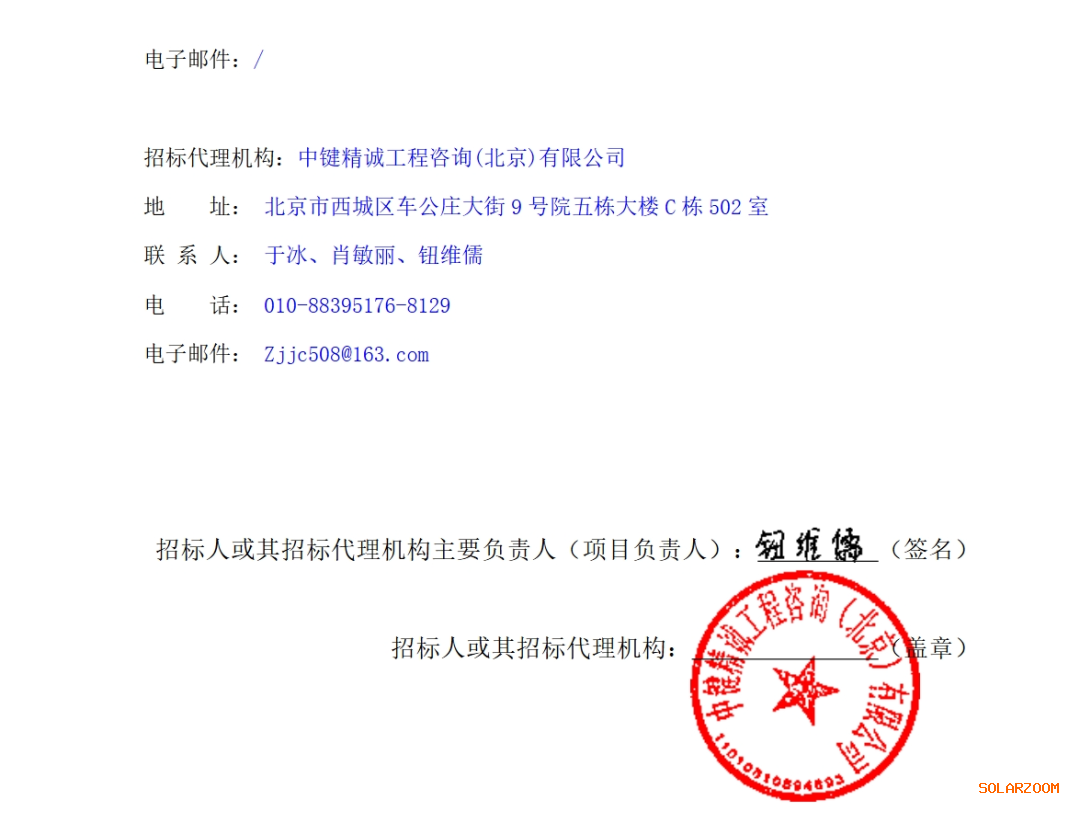 招标范围:建筑机电安装工程专业承包资质范围内的本工程光伏系统,包括不限于太阳能电池板、控制器、逆变器等设备、线缆、线、配管、支撑钢结构及防火面漆等的二次深化设计、供应、安装、调试和保修等工作。