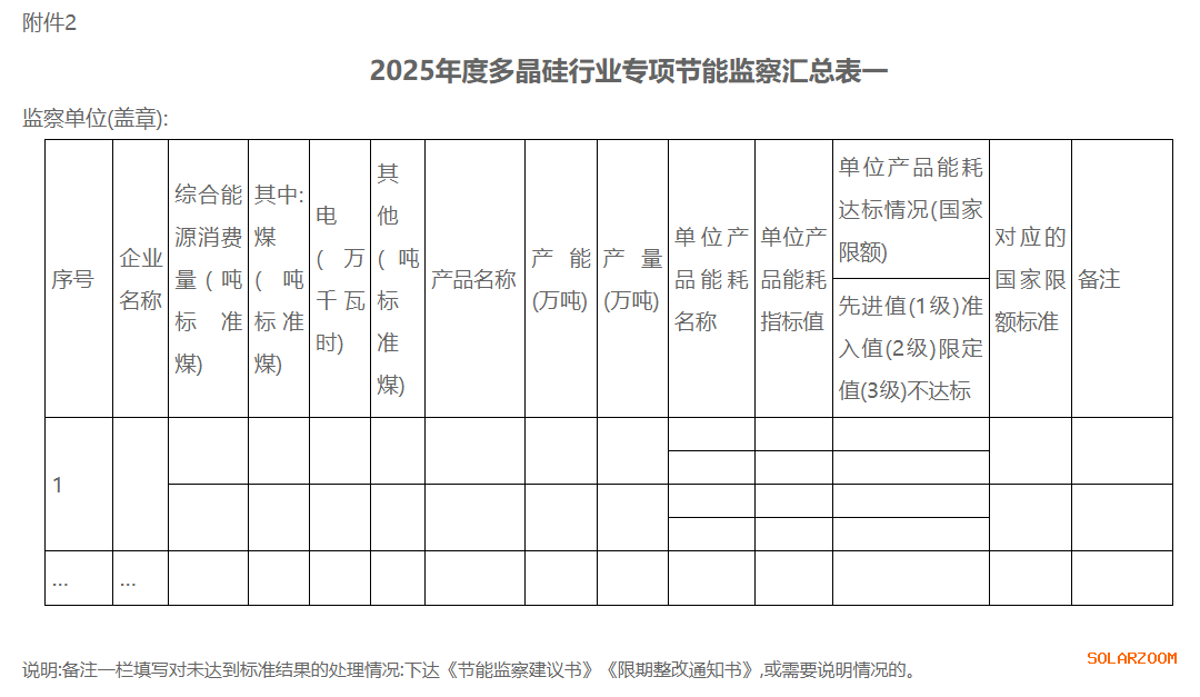 (三)结果上报阶段(2025年9月26日至9月30日)。9月28日前,自治区工业节能中心将多晶硅专项节能监察情况报自治区工业和信息化厅,监察情况包括:多晶硅专项节能监察总结、多晶硅专项节能监察汇总表(1-3)(附件2)。